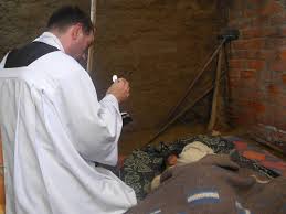 FSSP Giving Viaticum to dying woman lying in the dirt